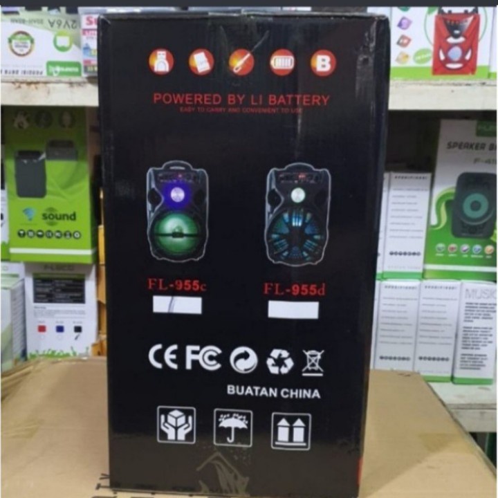 SPEAKER BLUETOOTH PORTABLE KARAOKE FLECO 8'5 INCH FL-955C&D BONUS MIC KARAOKE+REMOTE X-BASS / SPEAKER SALON AKTIF X-BASS / SPEAKER KARAOKE F-955C/F-955D