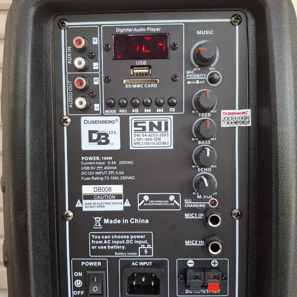 Speaker Portable Meeting Wireless Karaoke Dusenberg DB12A Bluetooth Tws