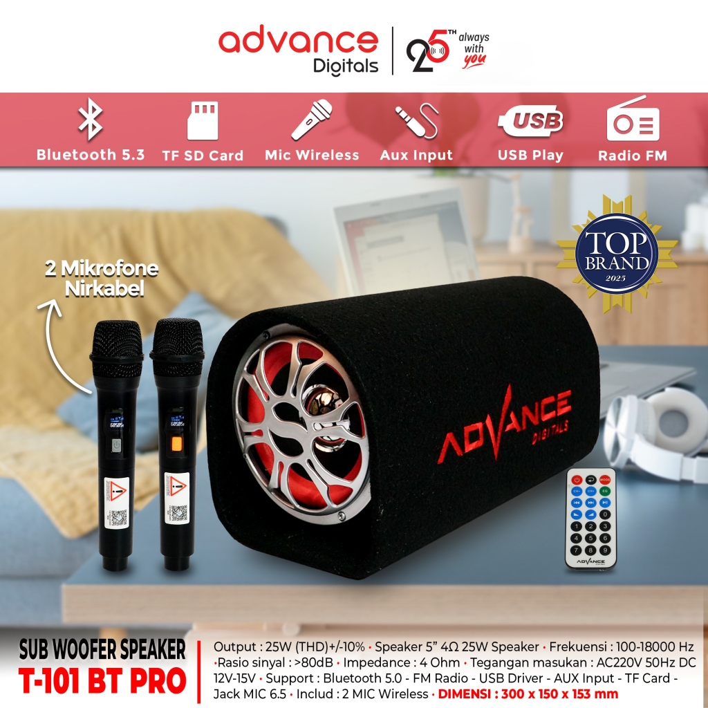 ADVANCE Speaker Bluetooth Subwoofer 5 inch Portable Karaoke Bisa untuk Mobil dengan 2 Mic Wireless