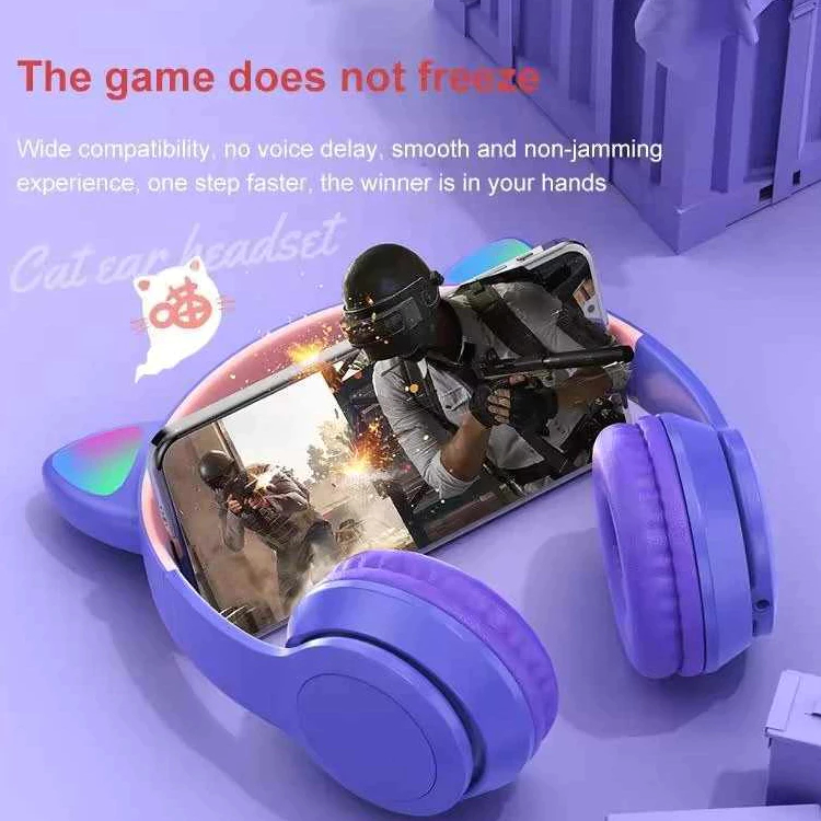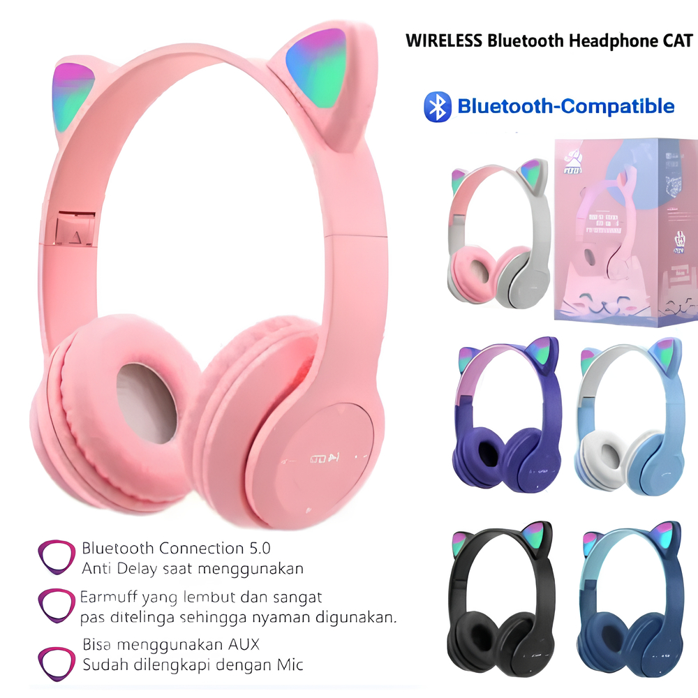 HEADSET HANDSFREE LED BANDO CAT MACARON BLUETOOTH MICRO SD / Wireless/Bluetooth Earbuds Stereo Headphone