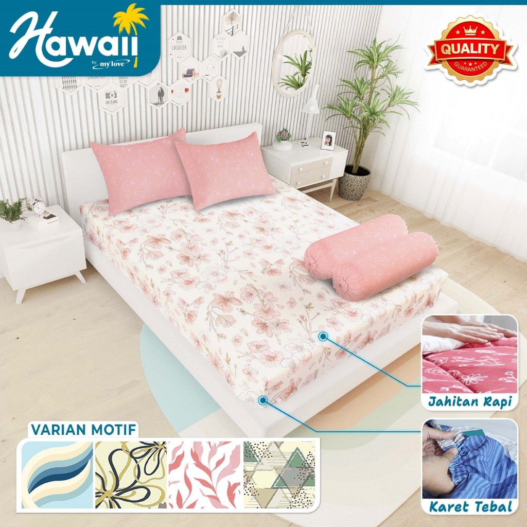 Hawaii Sprei Set Fitted Bantal 4 Motif Ukuran King 180x200 Sprei No 1