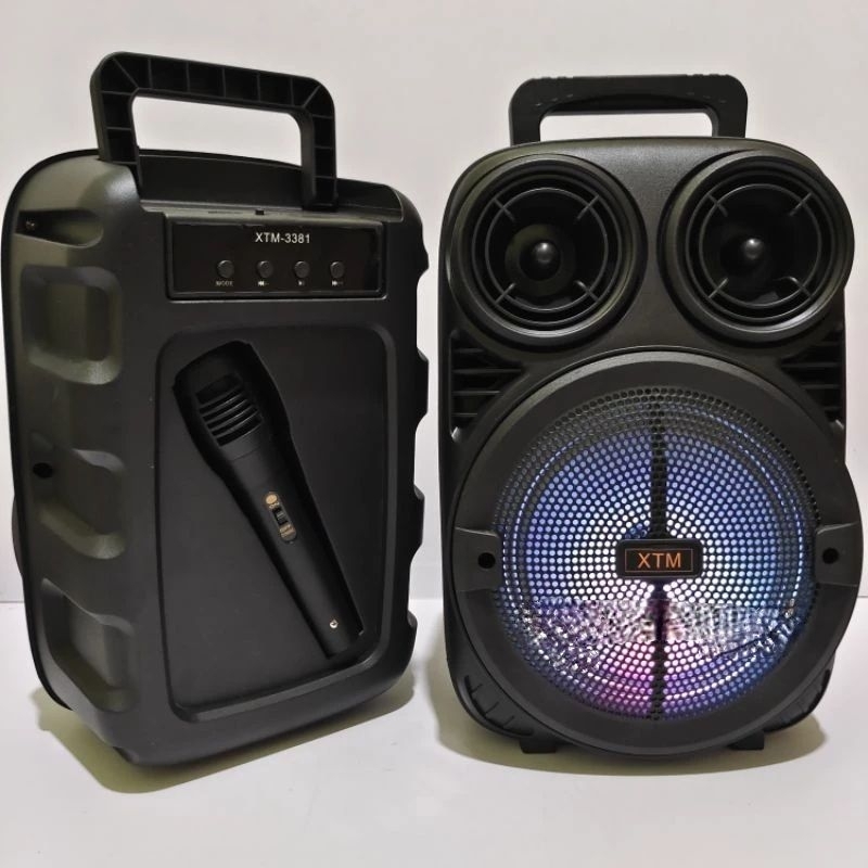 Speaker Bluetooth Karaoke XTM-3381 Free Mic 6,5Inci Salon Aktif Portable Radio Fm Speaker Wireless Led