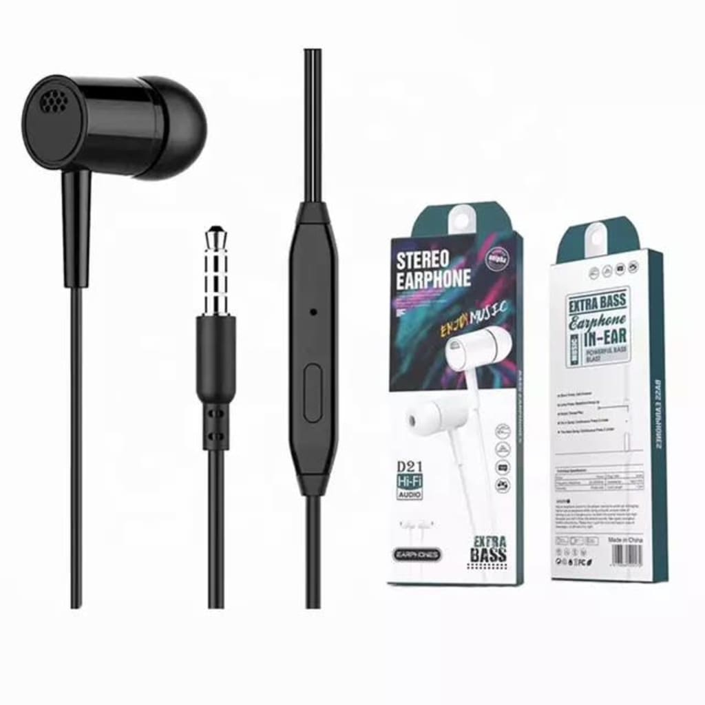EARPHONE HANDSFREE HEADSET D21 EXTRABASS WITH MIC MURAH