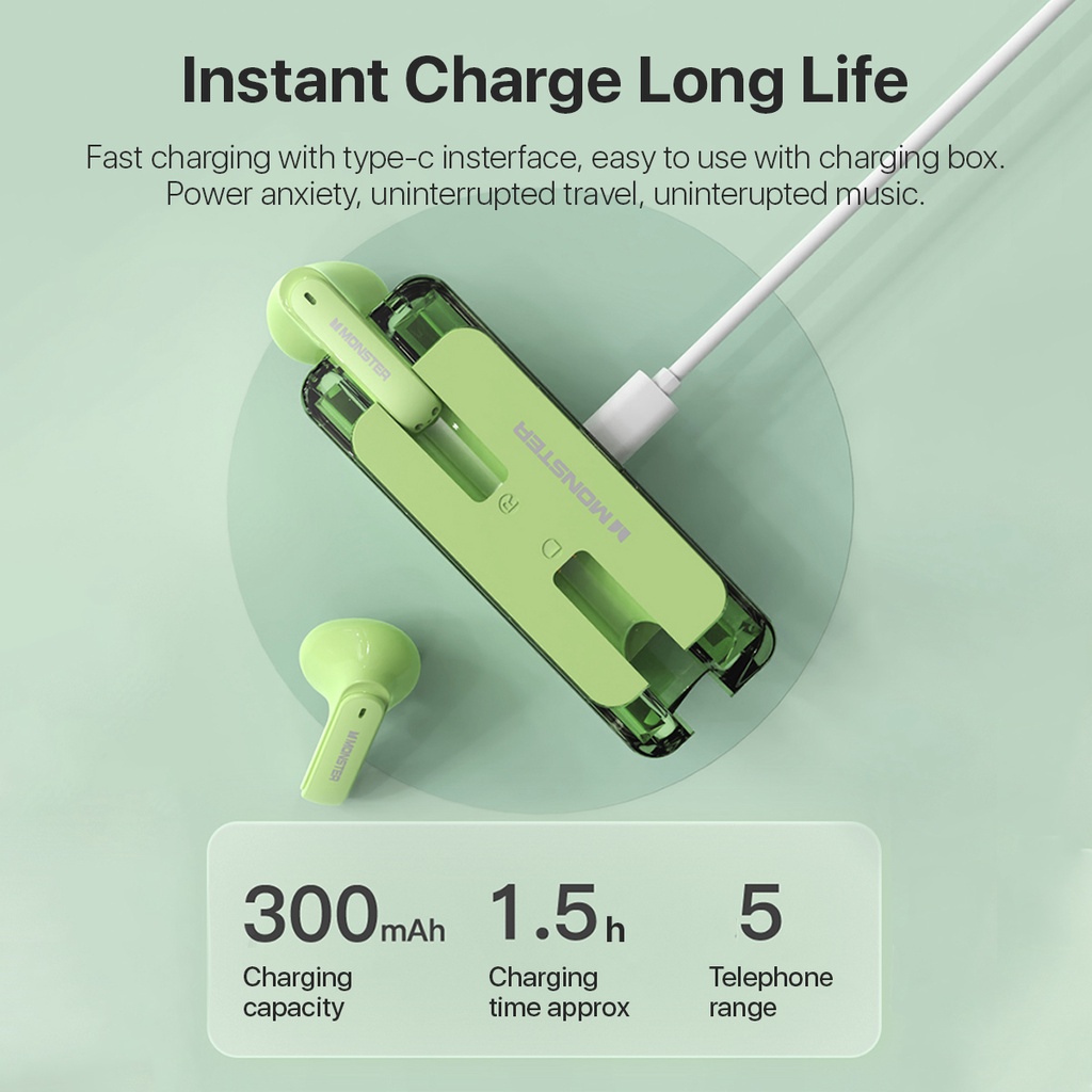 Monster XKT08 Wireless Bluetooth Earphone Headset Headphone Earbuds TWS HIFI Surround