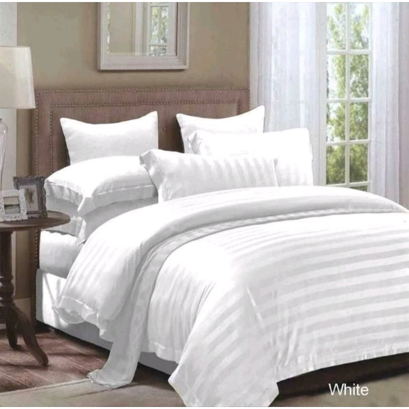 Bedcover + Sprei Set Salur Putih | Free Anti Geser