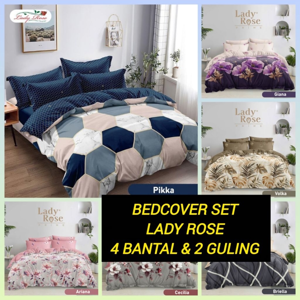 Bedcover Set Lady Rose 4 Bantal 2 Guling UK 180x200 Dan 160x200 / Bed Cover Lady Rose 4 Bantal Kepala