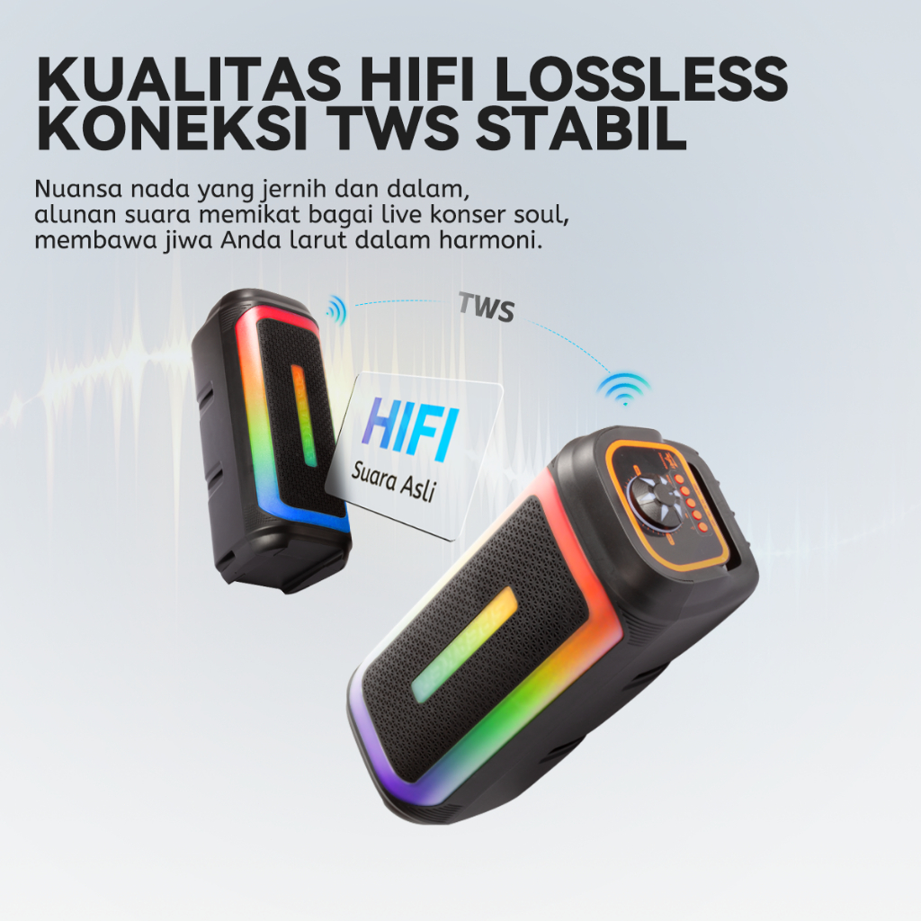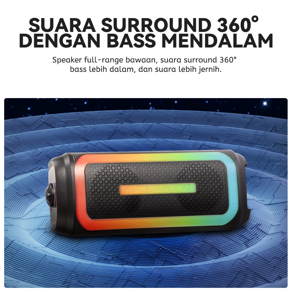 MAIKET Speaker Bluetooth Karaoke 2 Wireless Mic Super Bass Subwoofer 3D Stereo RGB -Garansi 3 tahun