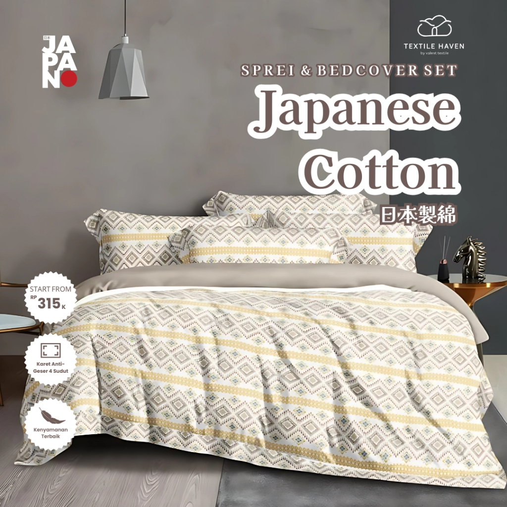 Sprei dan BedCover Set Katun Jepang Import Motif Geometry | Sprei Premium Japanese Cotton Motif