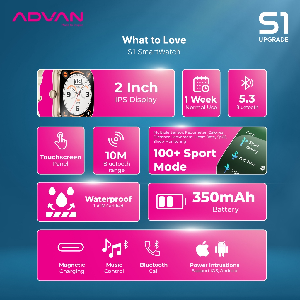 ADVAN Smartwatch S1 S1 V2 AI Voice IPS 2.01 inch Waterproof Bluetooth Call