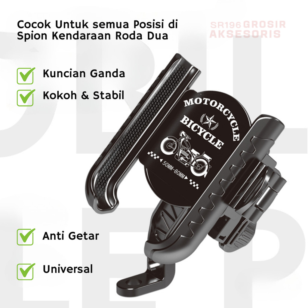 Holder Hp Motor Spion Dual Lock Anti Maling 360 Rotasi / Dudukan Tempat Handphone di Motor Stabil