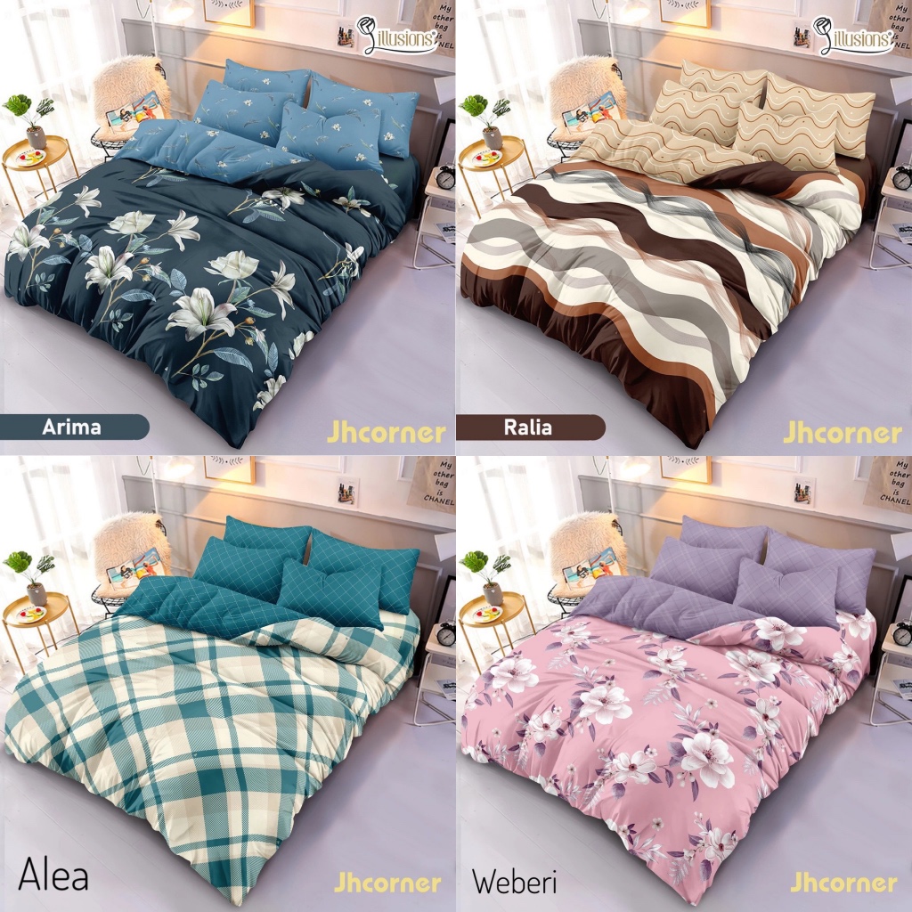 SET BEDCOVER ILLUSIONS SPREI RUMBAI UKURAN 180X200CM 6KAKI KING SIZE MOTIF BUNGA DAN MINIMALIS