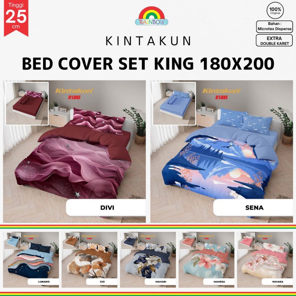 Kintakun Deluxe - Bed Cover SET SPREI FITTED Queen / King T25 (160x200 / 180x200) tinggi 25 Aesthetic Multivarian Digital Printing Terlaris pilihan