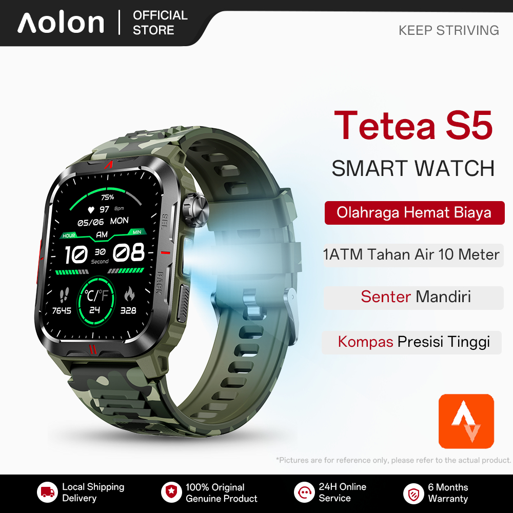 [NEW]Aolon Tetra S5 Jam Smartwatch Original 1.93 Inci 1ATM Tahan Air 10 Meter Kompas & Senter Deteksi Tidur Kecepatan Olahraga Jam Tangan Bersertifikasi Tingkat Militer Smartwatch Pria