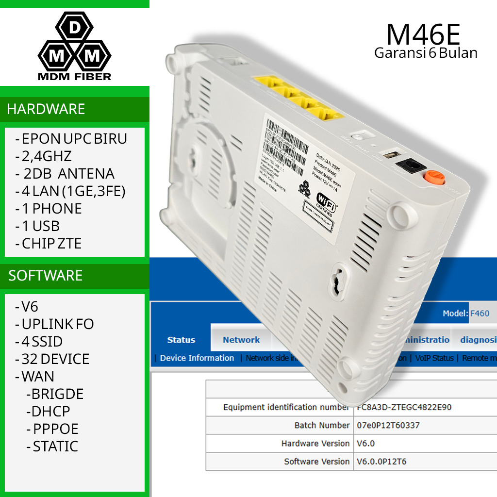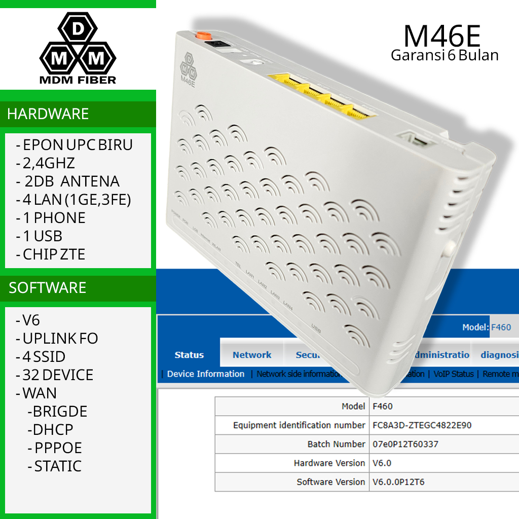 F460 M46E V6 Epon modem router onu ont MDM FIBER