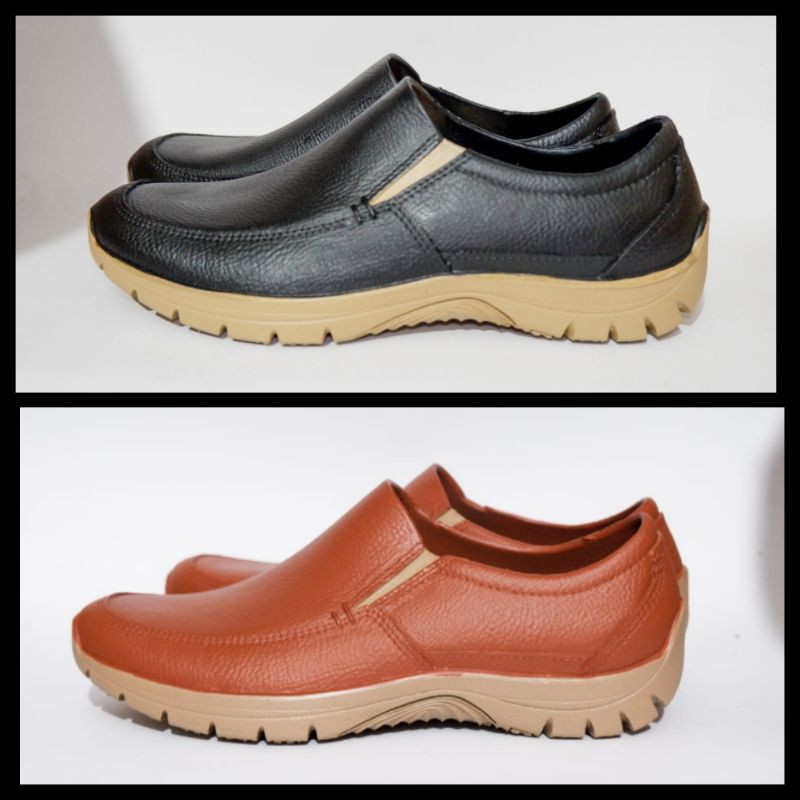 Sepatu kerja tanpa tali Sepatu slip on pria karet anti air