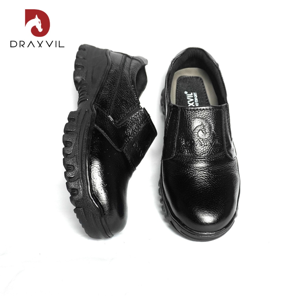 Draxvil Kulit Sapi Asli - Sepatu safety pria kulit sapi asli DRAXVIL Original, sepatu slip on