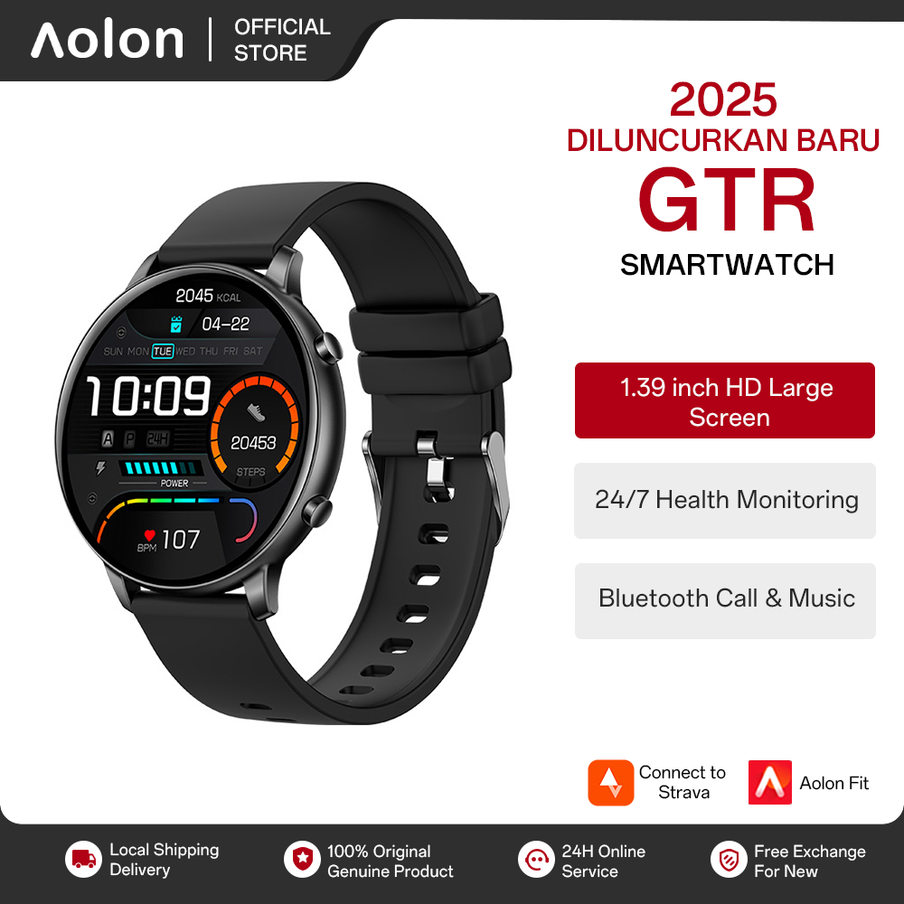Aolon GTR Smartwatch 2025 Baru Original Fasion Design Music Bluetooth Call Health monitoring sports mode Wanita Pria