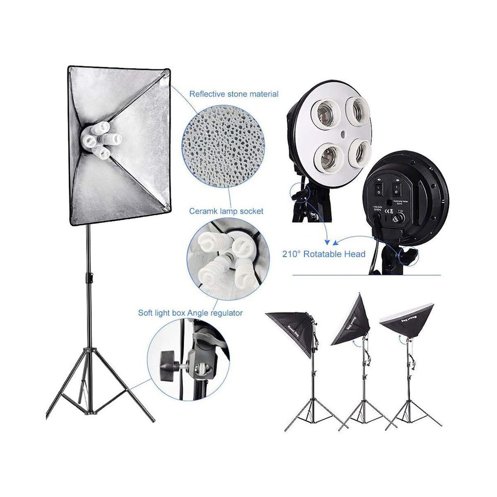 Paket 2 SET Lampu Studio Video Softbox Foto Studio 4 Socket E27 + Light Stand Reflektor