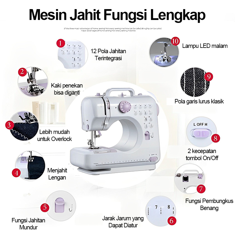 Epic Finds Mesin Jahit Mini Portabel 705A 12 Stitch Pola 1 mesin Jahit Listrik Pakaian Jahit Tangan Mesin Jahit Portabel