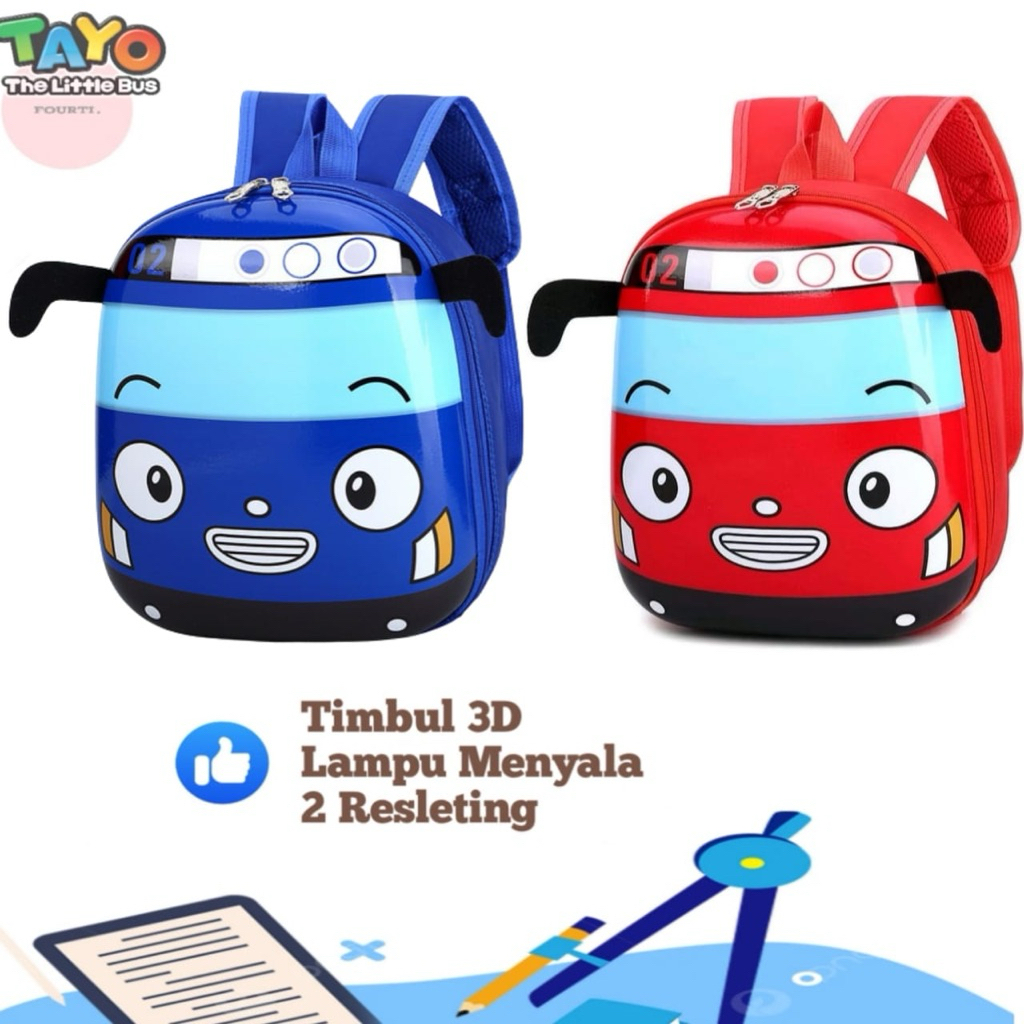 Tas Tayo anak PAUD Timbul 3D Menyala Laki Laki Backpack Tayo