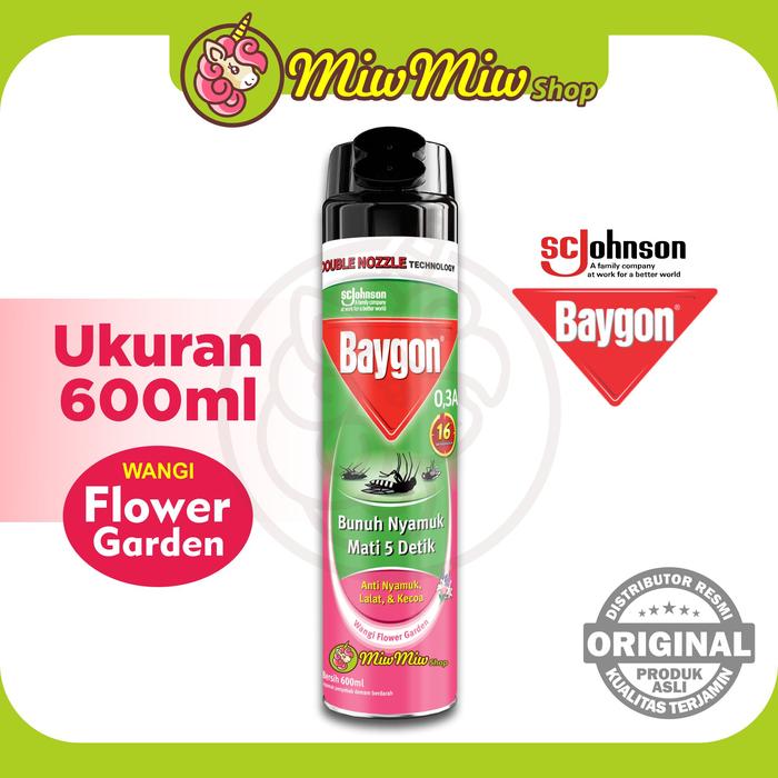 SALE !! BAYGON SPRAY P3M-B45M! SERANGGA (NYAMUK, LALAT & KECOA) - FLOWER GARDEN 600+75 ML (MERAH) TERMURAH