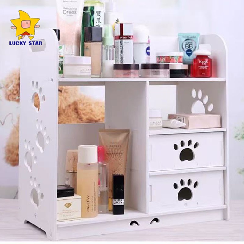Rak Kosmetik Kayu Kotak WPC Tempat Makeup Tahan Double Drawer Cosmetic Storage