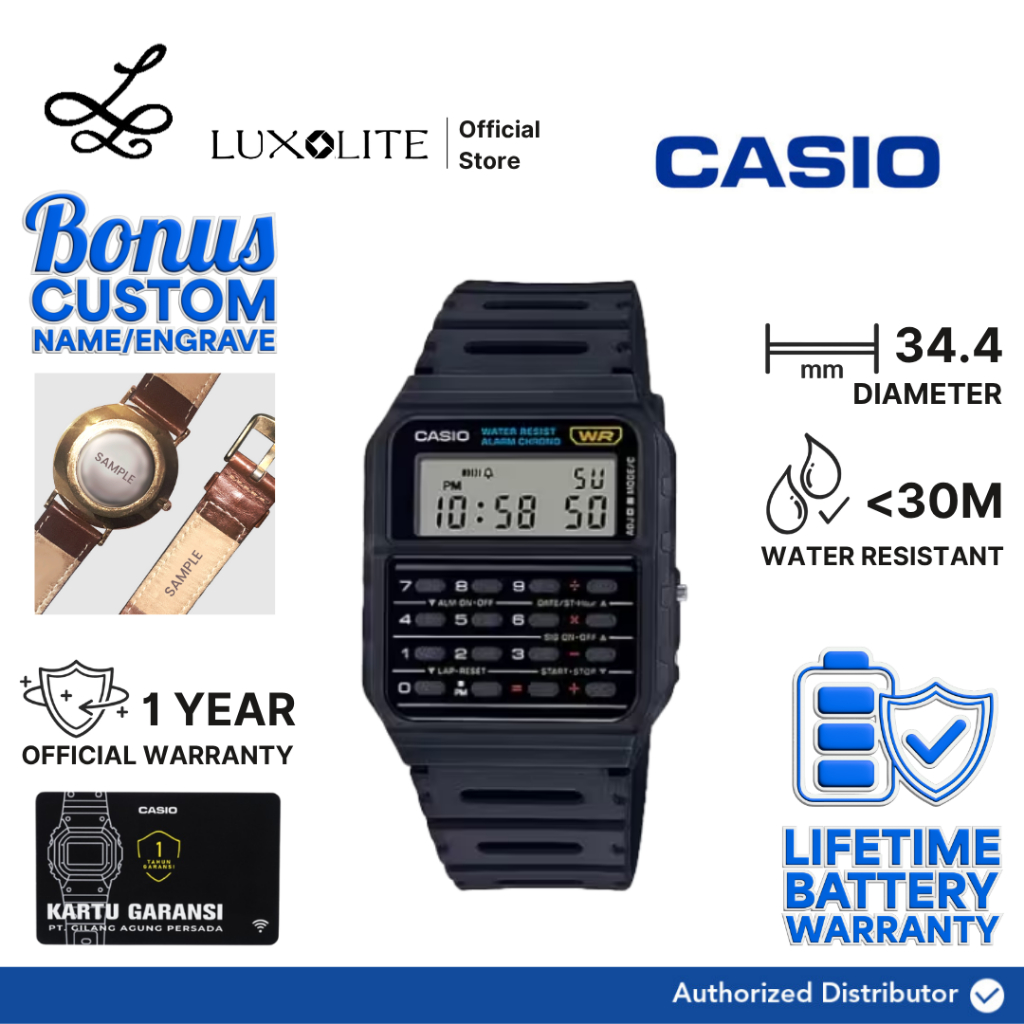 Casio Jam Tangan Pria Ca-53W-1Zdr/Ca-53W-1Z/Ca-53W-1 Digital Data Bank Black Resin Strap