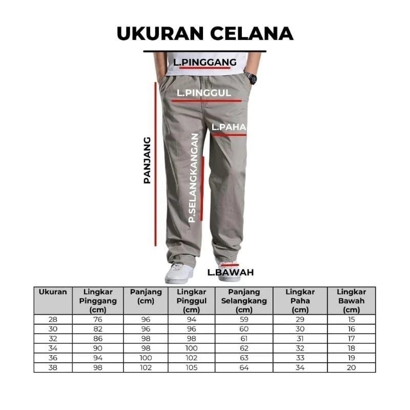 Afareen - Celana Sam Jaksel Chino Panjang Pria/Wanita Unisex Chinos Reguler Stretch Melar 28-42