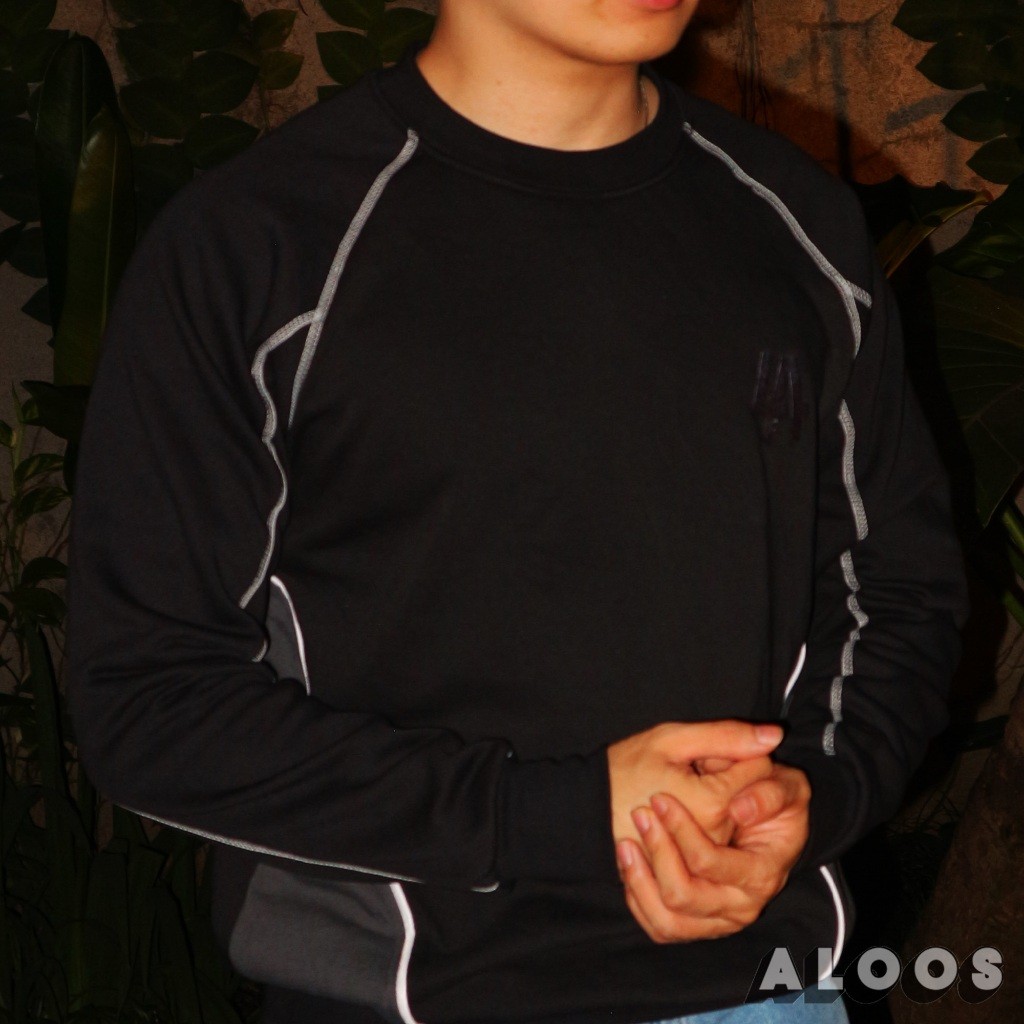 Aloos Sweatshirt - Black Charcoal Edition | Crewneck Kombinasi Lining Overdeck | Bordir / Embroidery