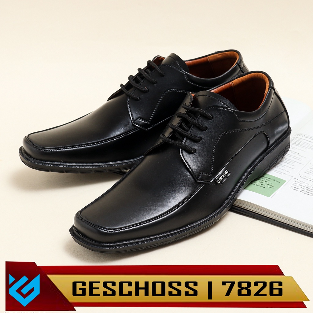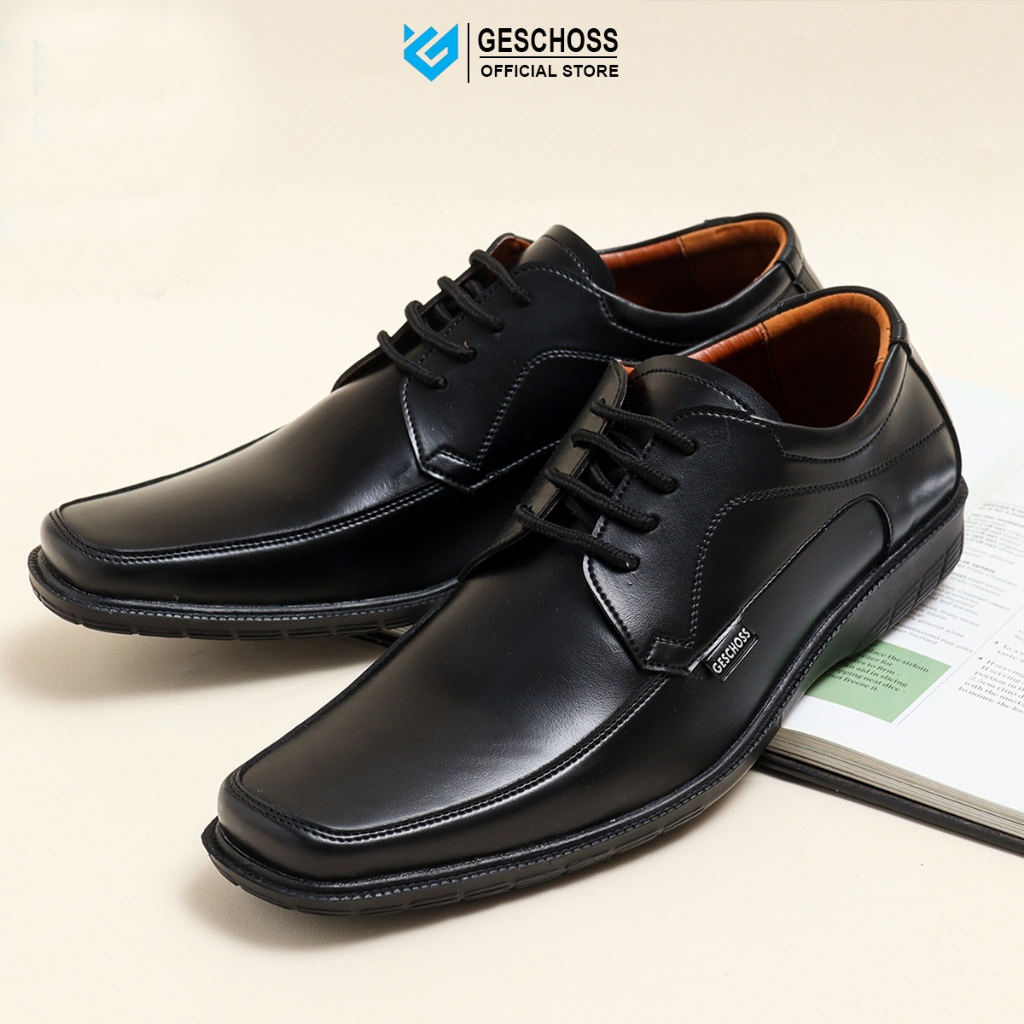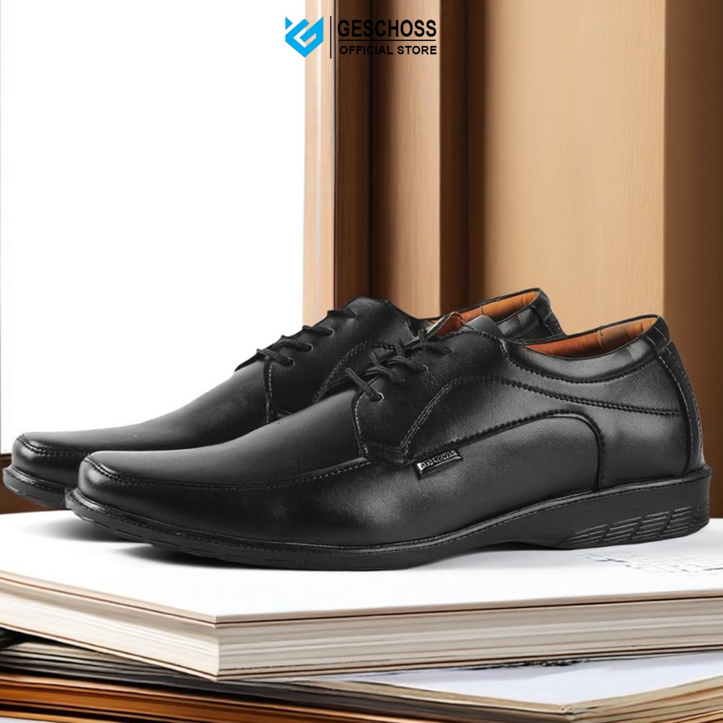 GESCHOSS Full Black Sepatu Kantor Pria Hitam Tali Sepatu Kerja Formal Pantopel Kerja Kasual Santai