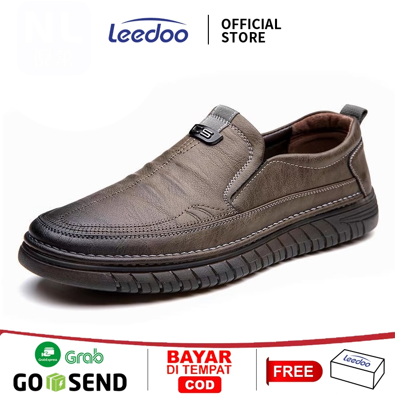 Leedoo Slip On Pria Kulit Sepatu Pantofel Formal Sepatu Casual Sepatu Kerja Shoes Kuliah MC483