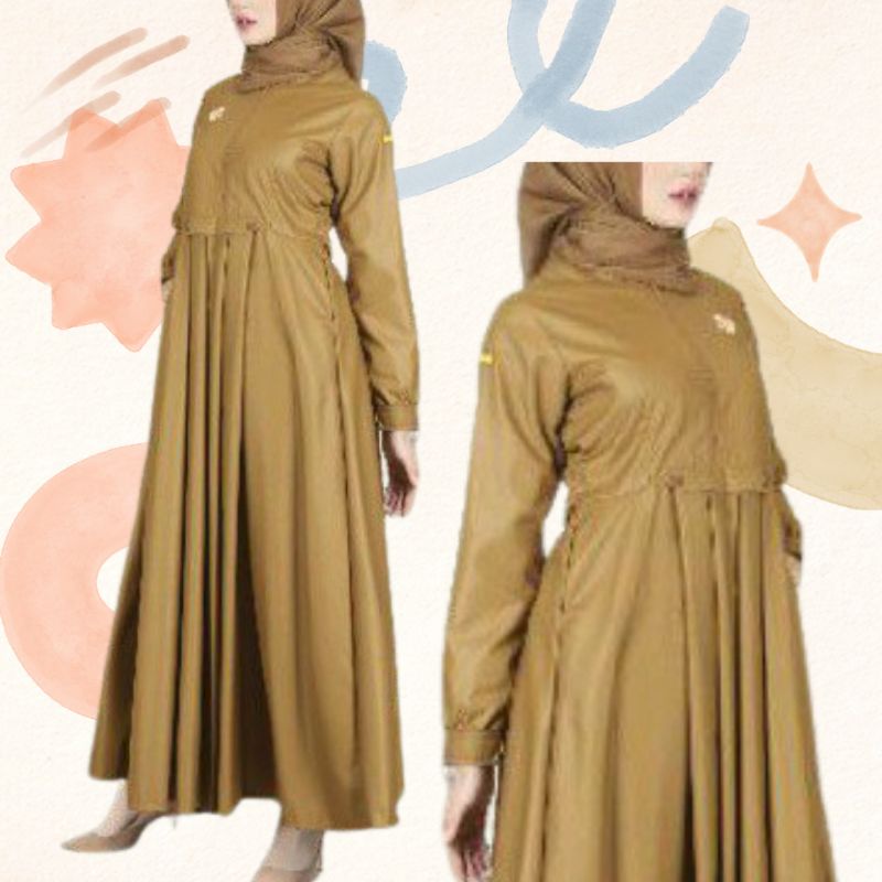 Gamis polos wanita seragam pemda pdh pns Khaki keki wanita bahan toyobo adem model tangan manset seragam kerja gamis pns