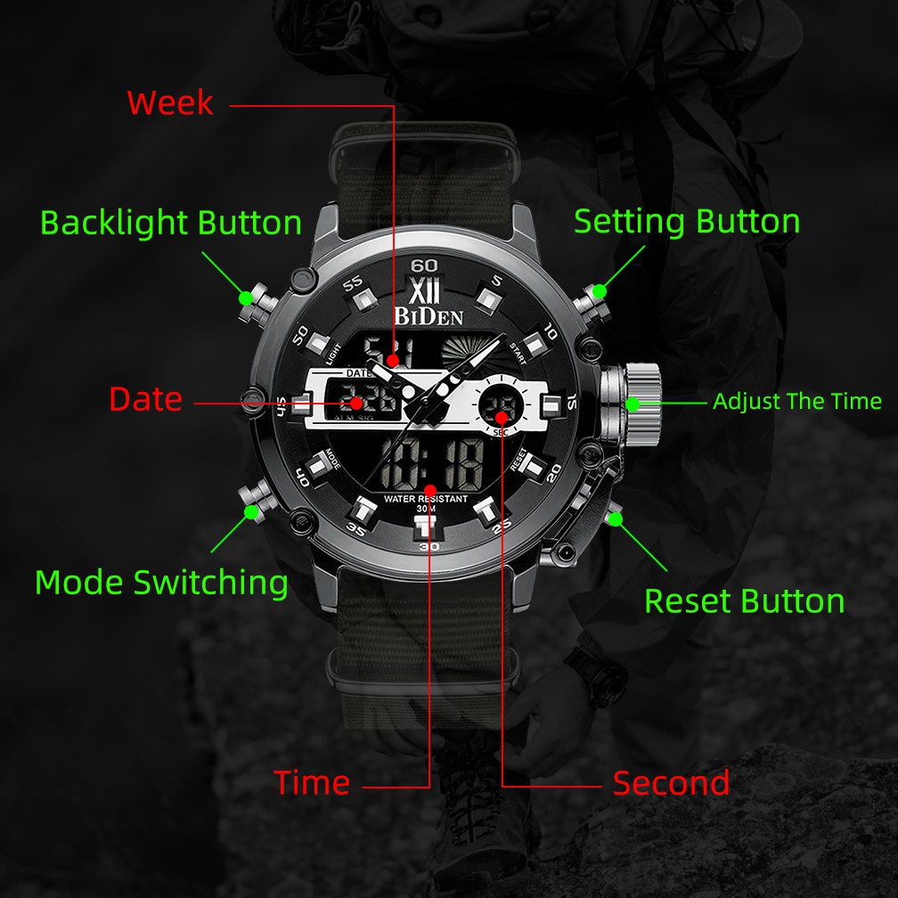 Biden Jam Tangan Pria Olahraga Multi Tahan Air Atas Bisnis Chronograph Jam Tangan