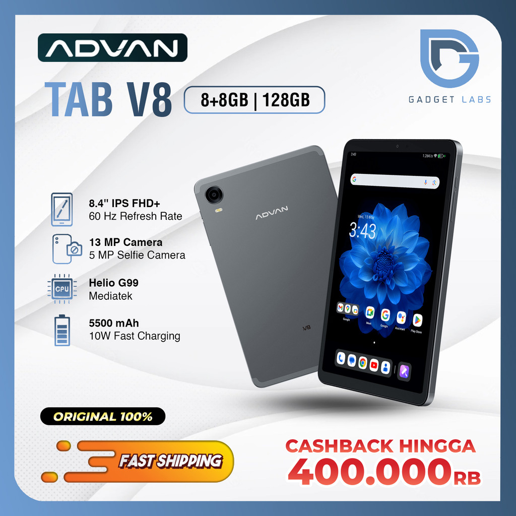 ADVAN TAB V8 8+8GB/128GB Tablet Gaming 8.4″ Dual SIM 4G LTE | Mediatek Helio G99 | Android 14 | Garansi Resmi