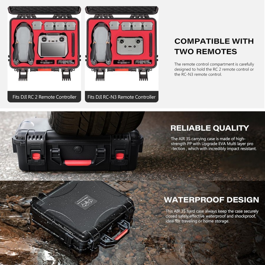 STARTRC Waterproof Carrying Case for DJI Air 3S / Air 3 Fly More Combo Tas Koper Multifungsi RC 2/RC/RC-N3/N2 Controlle
