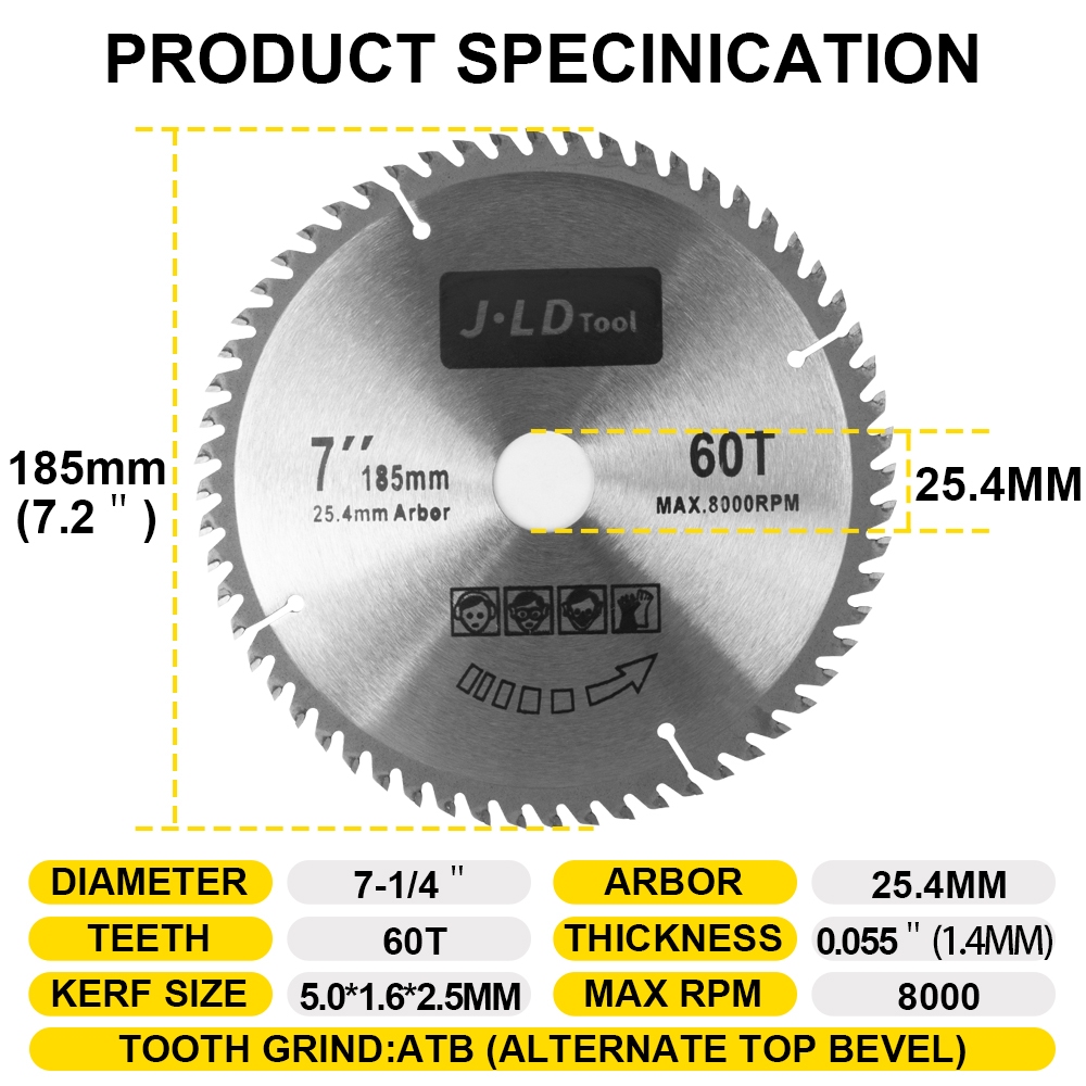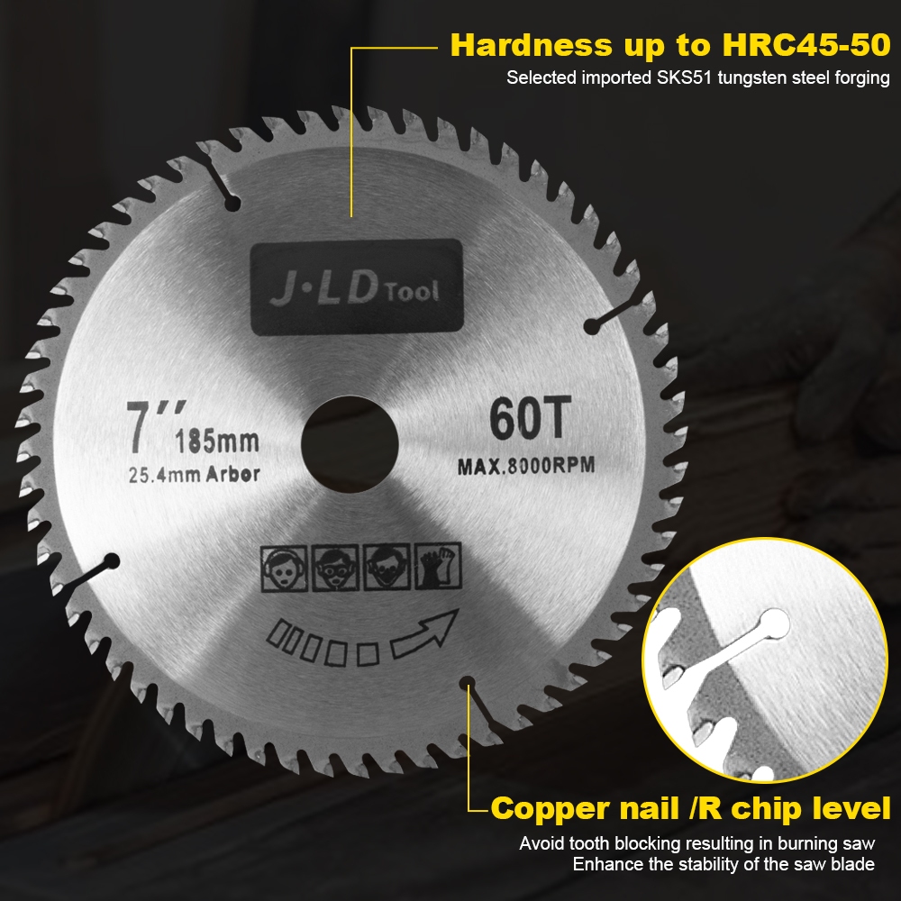 JLD 7" Mata Pisau Kayu Circular Saw 60T Mata Pisau TCT Circular Saw Blade Mata Gergaji Potong Kayu