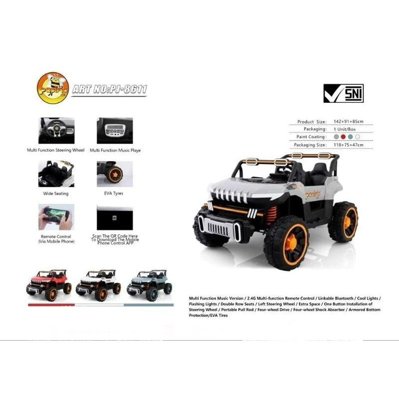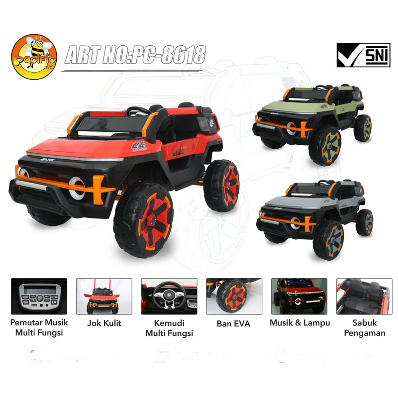 (FREE KARPET ALAS KAKI) Mobil Aki anak Super besar Monster Pacific PJ 8611 8618 Mobil listrik Cas ces an