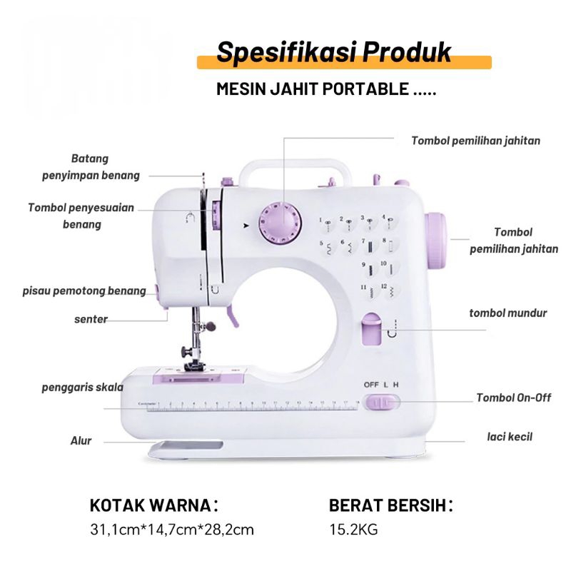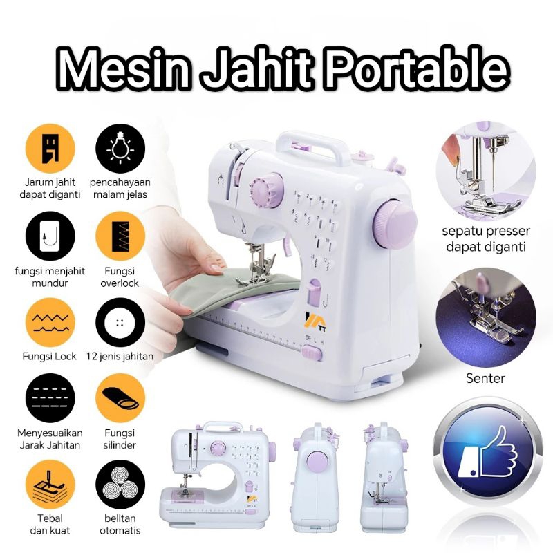 Mesin Jahit Mini Portable 505A 12 Jenis Pola Jahitan Mesin Jahit Listrik Mesin Jahit 505A 12 Stitch pola Mesin Jahit Oto