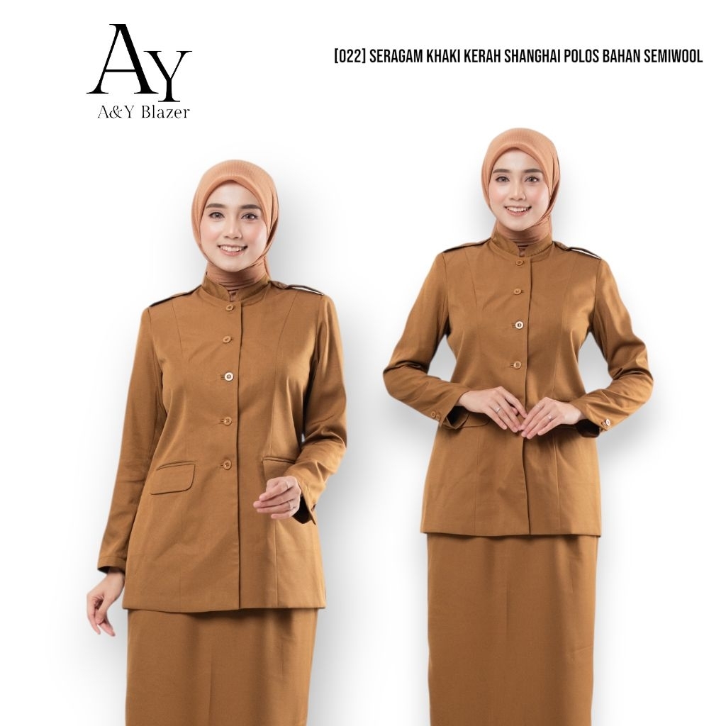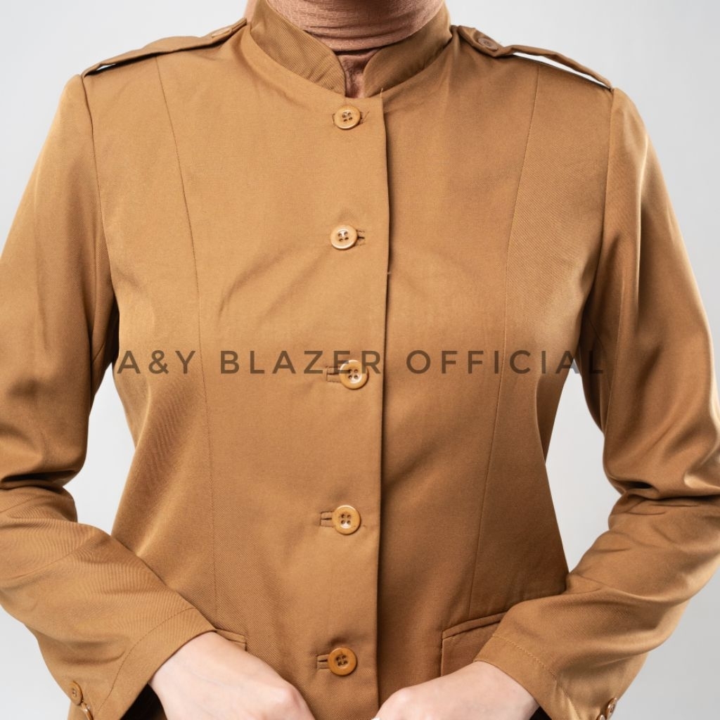 [022] BARUU !! KERAH SHANGHAI POLOS !! A&Y Blazer Baju Seragam Pemda PDH Wanita warna Khaki Tua Terbaru | BAHAN SEMIWOOL