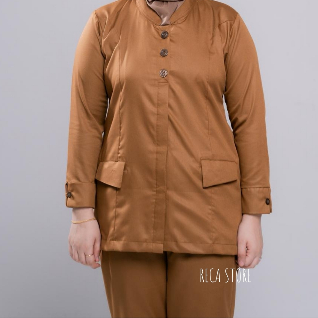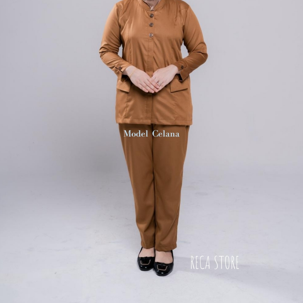 Setelan Seragam PDH Khaki Tua PNS PEMDA GURU Model Saku Bawah Wanita Simpel Terbaru