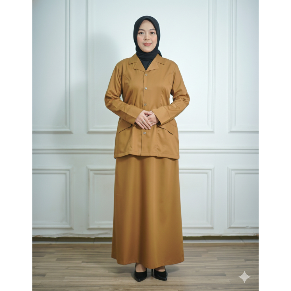 Setelan Baju Kemeja Pemda Dinas PDH PNS Wanita Model Saku Dada Warna Khaki Tua Terpopuler