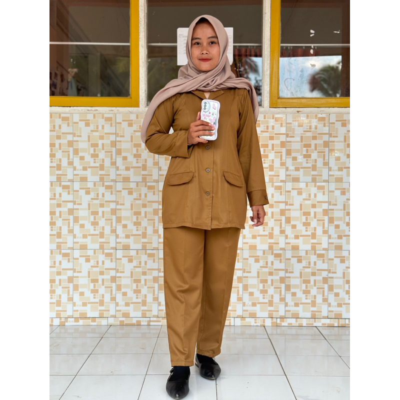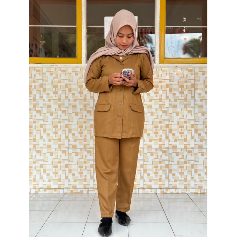 (khaki)SETELAN ROK, Khaki)SETELAN CELANA, SemiJas rok span