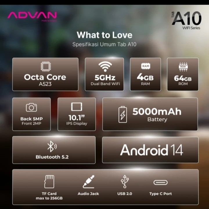 TAB ADVAN / TABLET ADVAN A10 WIFI 4GB / 64GB ANDROID 14 10.1” IPS GARANSI RESMI 1 TAHUN