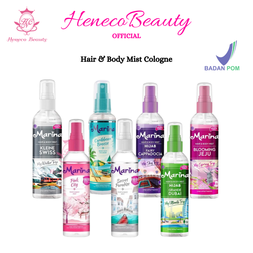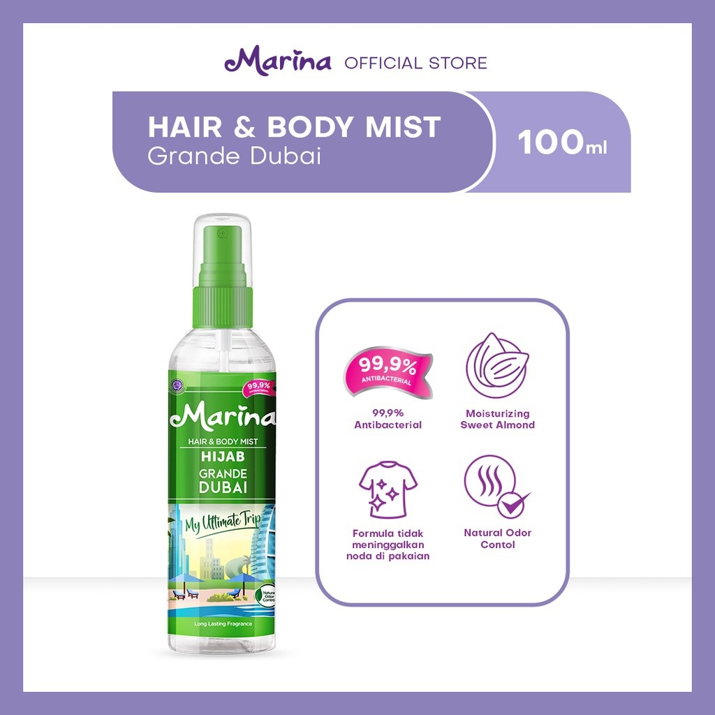 MARINA Hair & Body Mist Cologne 100ml ~ Carribean Breeze Secret Paradise Hijab Grande Dubai Blooming
