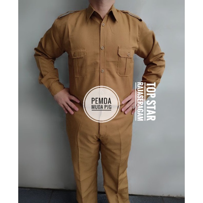 Baju Seragam PEMDA Khaki Panjang Setelan PNS Kemeja dan Celana