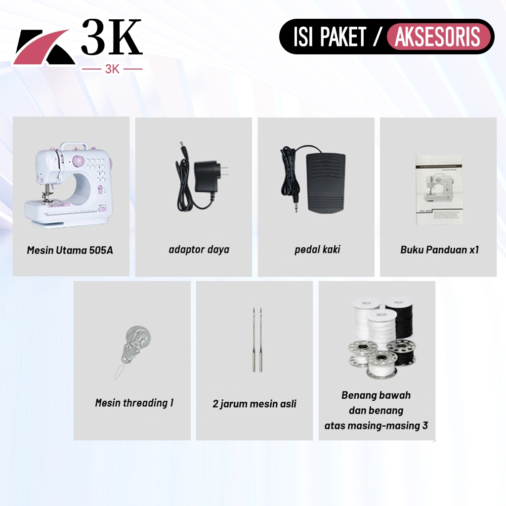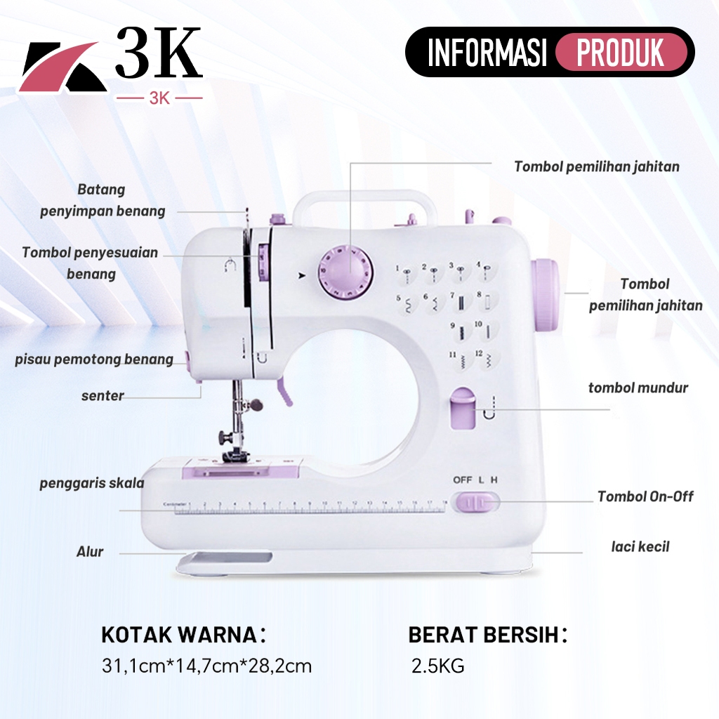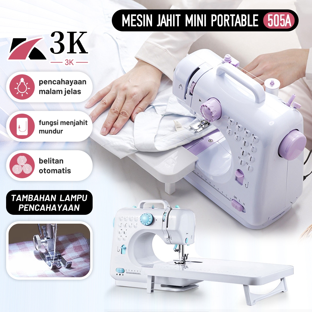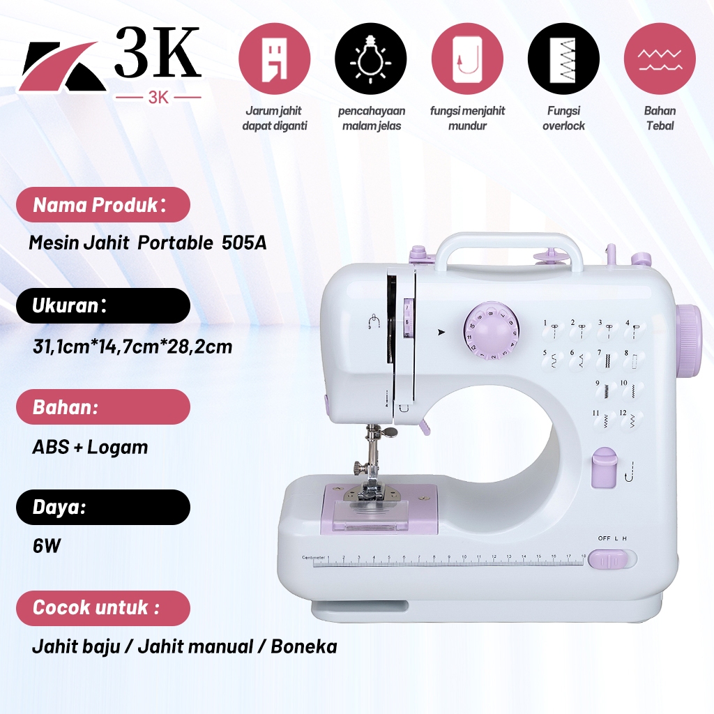 (3K Surabaya) Mesin Jahit Listrik Portable 505A Dengan 12 Pola Jahitan Jahit Pakaian + Lampu LED