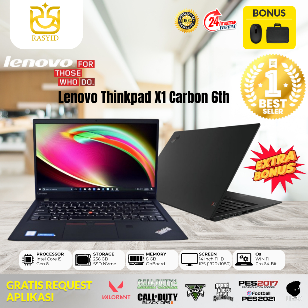Laptop Lenovo Thinkpad X1 Carbon 6th Intel Core i5 Gen8 Ram 16gb Ssd 256gb Bergaransi