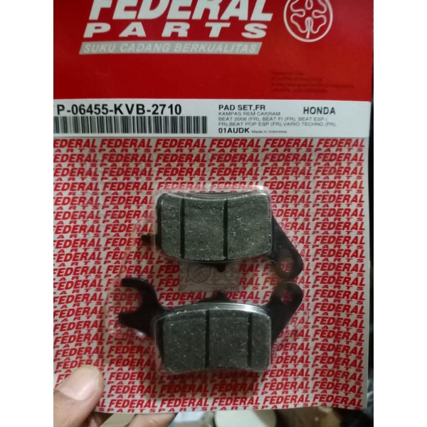 kampas rem depan cakram FEDERAL fp-06455-kvb-2710 untuk motor beat 2008,beat F1,Vario CBS,Vario 125