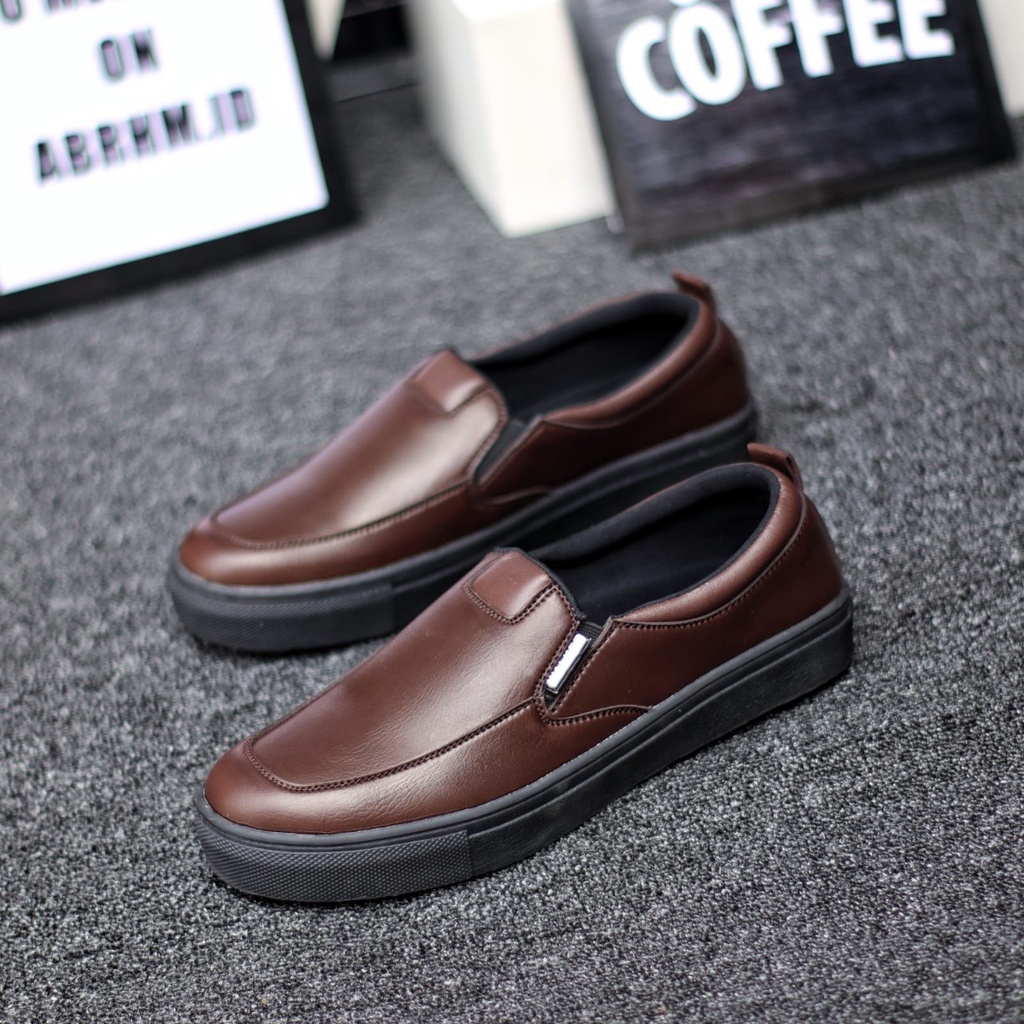 MOLK sepatu formal pria hitam pantofel casual kerja kantor kuliah kulit sintetik