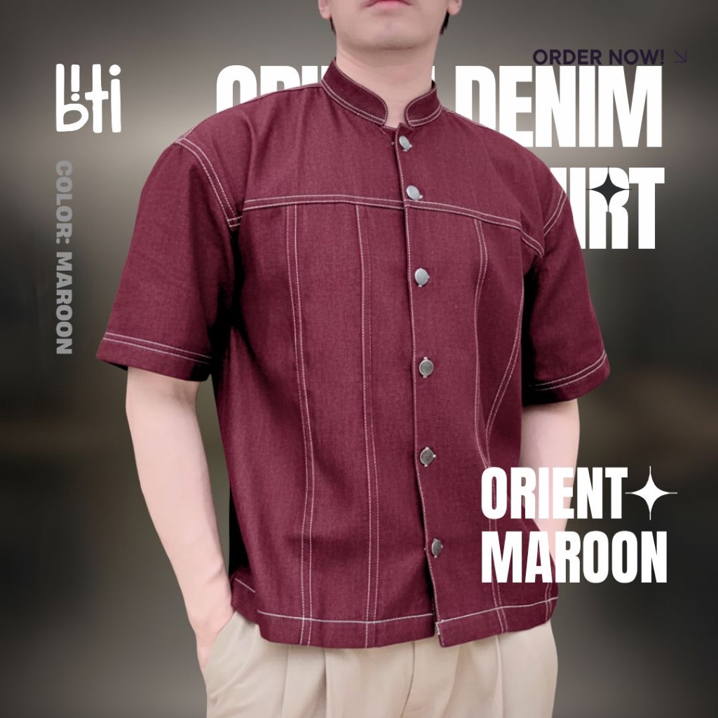 Biti Orient Denim Shirt | Kemeja Outer Koko Denim Jeans Pria Lengan Pendek Kerah Shanghai Oriental